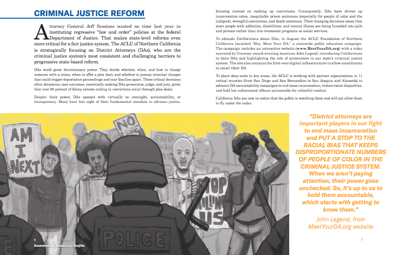 2017 ACLU Annual report Here are a few illustrations I did for the ACLU Annual report. You can see more of the report here. November 13, 2018 Robert Trujillo in General No Comments 0 Likes