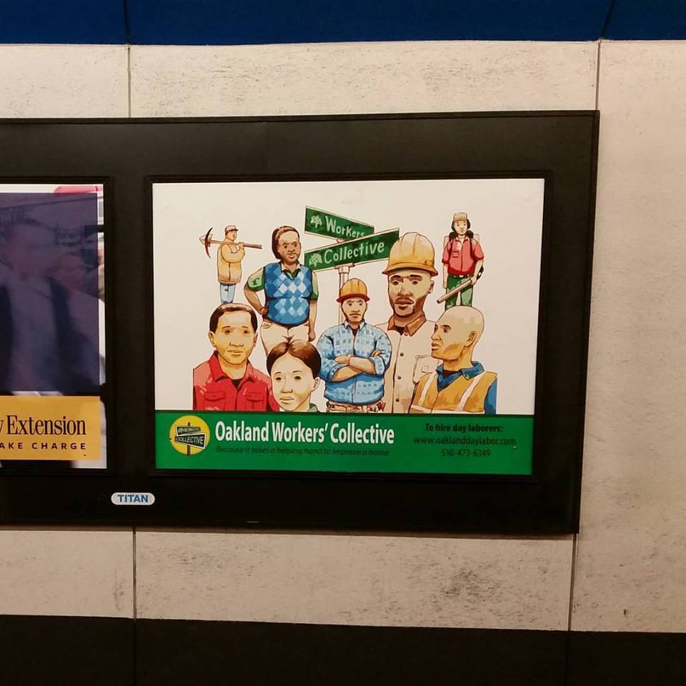 This is the final painting of workers for the Oakland Workers Collective. This is a project involving workers from various walks of life for “Street Level Health Project”in the Fruitvale district of Oakland. For this project I met w/jornaleros (workers) from so many different countries and backgrounds. Myself along w/ several students from UC Berkeley sat and listened to stories of trials, tribulations, and triumphs of being day laborers or domestic workers in Oakland California. Because there are so many challenges workers face on the job and obtaining jobs, Street Level Health created the Oakland Workers Collective to support these folks so they are not disrespected, cheated, abused, or ignored by local employers on the job; Whether that job is in construction, home renovations, home cleaning, child care, etc. Some of the support that the collective provides includes medical care both physical and mental, legal representation, assistance getting quality gigs, and the support of an organization that stands up for its family.