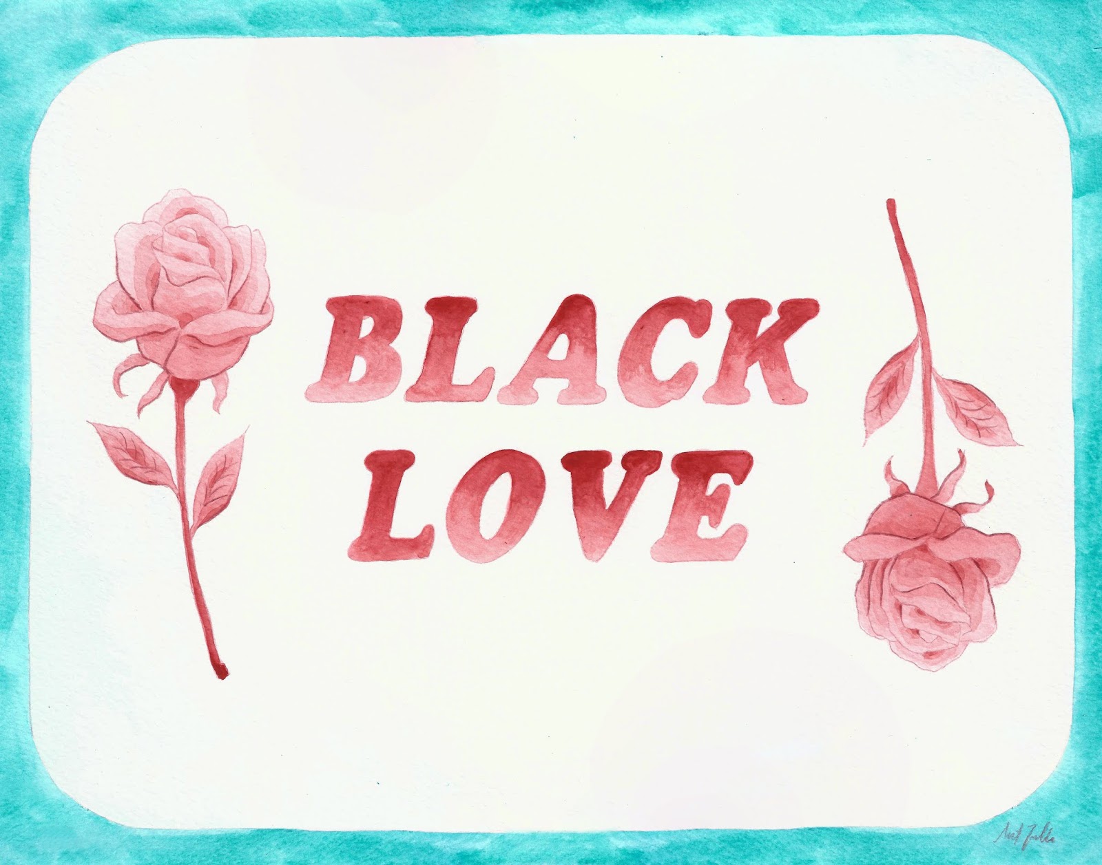 This piece is to celebrate Black Love in all its forms. I just imagine two flowers and the words because I wanted it to be a statement that both heterosexual and queer couples could get into. Also, it could be used for family too. Either way, I want to celebrate the Black love that I’ve seen and continue to see. I am a mixed kid (Black, Korean, Mexican, Apache), I am in a mixed relationship, and my kids are mixed. But I can still celebrate Black Love.