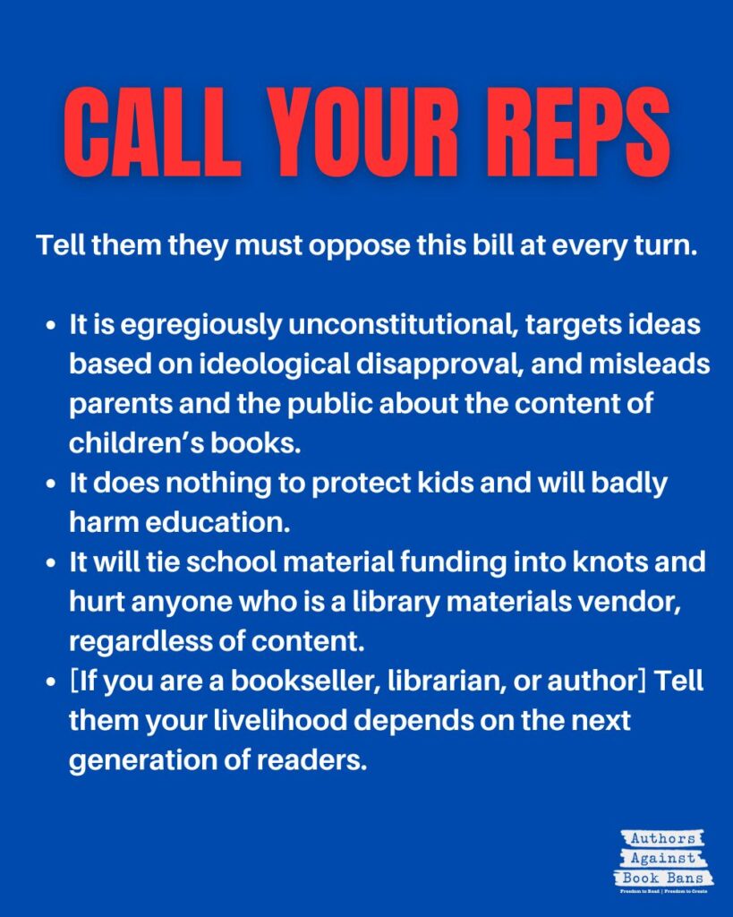 Urgent, call your reps to tell them : Vote NO on HR 7661! This is a dangerous bill targeting Queer and Trans kids, families, and books, read the images and go to this link #authorsagainstbookbans