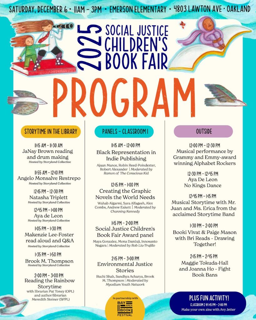 Fam, it’s that time of year. The 9th annual Social Justice Children’s Book Fair is upon us. This fair celebrates Bipoc, Queer, Immigrant, and Social Justice minded kid lit creators, literacy organizations, and the Bay kid lit community. We got over 50 creators, panels, performances, story time, and activities!!