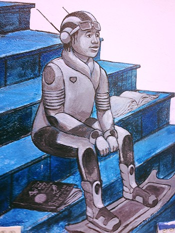 Now they have this sanctuary. A writing center to be, where my murals sit everyday waiting to make new friends among books, zines, artwork, and artifacts that inspire “Make Believing.”