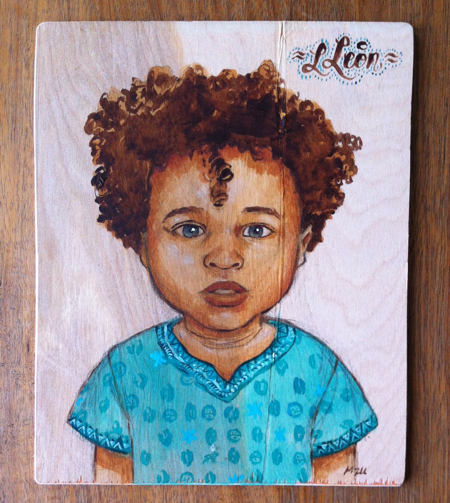 This is little L’Leon, just finished this portrait for his momma Lady Soul Fly, and I cannot remember how old he is now, but I know he’s African American and Puerto Rican. Check out some process shots below. If you are interested in a portrait of a little one in your life, please click HERE.