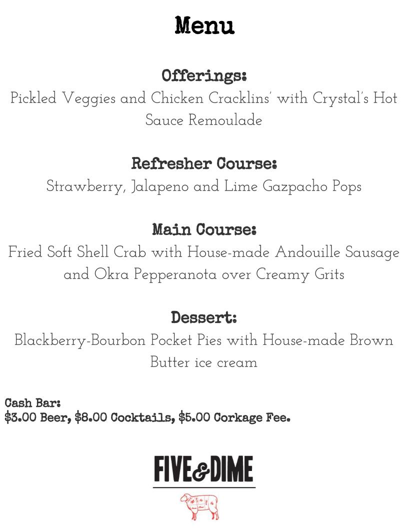 Peace everybody, its on again. If you’d like to hear about my creative journey, ask questions, or just kick it over some delicious food, please come check out Five & Dime. Its an event where creative people of many disciplines get to stumble over words while eating artisanal/hand crafted food inspired by whoever is the guest of honor. There are only 3 or 4 seats left and this will be intimate. So come through and check the menu.