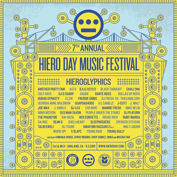 For folks who don’t know, Hiero Day was founded by Oakland’s “Hieroglyphics Crew” which features Del the Funky Homosapien, Souls of Mischief, Casual, Domino, Pep Love, etc. And the line up this year features Hiero of course, Black thought, Saroc, Freddie Gibbs, Georgia Anne Muldrow, Ruby Ibarra, Umar bin Hassan of the Last Poets, Richie Rich, Mike Relm, Astu, and more… from all over the world.