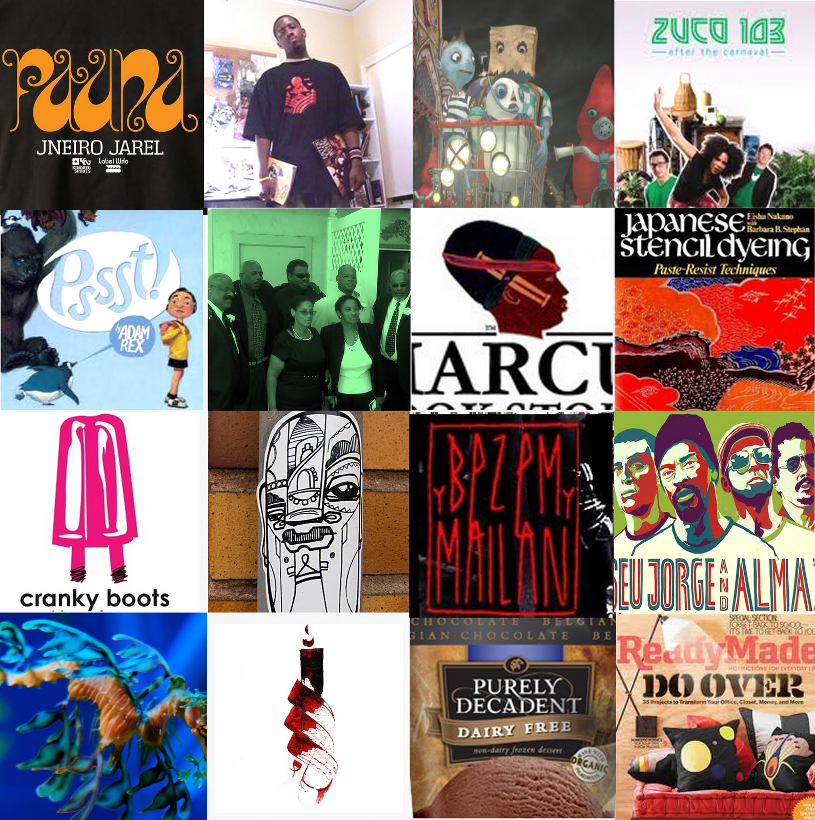 Jneiro Jarel-Fauna, been supporting JJ since “Big Bounce Theory”. Animator/Illustrator LeSean Thomas-Man behind The Boondocks character animation. Deathtic 4-By Studio 4C, directed by one of my favorite artists right now-Shinji Kimura, see below.Zuco 103-Amsterdam/Brazilian group-“Nunca Mais” is my joint. Psst! By children’s book illustrator Adam Rex(love this dudes style). My uncles, aunties, my momma-my family. Marcus Books-historic black bookstore in Bay Area. Japanese Stencil dyeing, first saw this boom in NY, incredible technique i want to learn. Cranky Boots Popsicles-organic, local, popsicles by some friends. Sticker by artist”Dead Eyes”-dope style! Bezem y Mailan-some of the most amazing fashion designers Ive seen, too bad they don’t design for men. Seu Jorge+Almaz-feeling some songs from this group! A “Leafy Sea Dragon”-love em, so beautiful! Calligraphy, typography by Samir Malik. Purely Decadent-non dairy ice cream-I eat both dairy and non dairy, but I like to try new things. And “Ready Made” magazine has tons of dope art ideas!