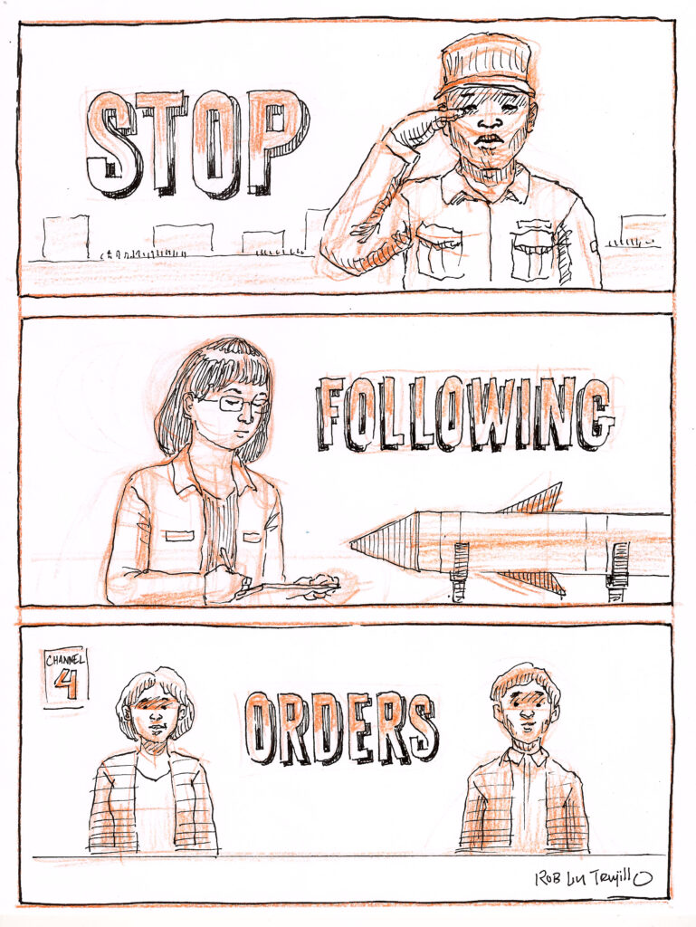 Here’s a short comic that had me thinking about how a system of government needs and thrives with loyal, unquestioning workers to follow orders. They need folks to not step out of line, to not think. But if they do, keep it to themselves. It does not work without obedience OR ignorance from its citizens. What is the United States rank education wise? So, I wanted to depict a soldier, defense contract worker, and journalists with the words “Stop Following Orders”. Right now, the US and Israeli governments are playing a vicious game with real lives by bombing Iran. Some questions come to mind when I think of this: