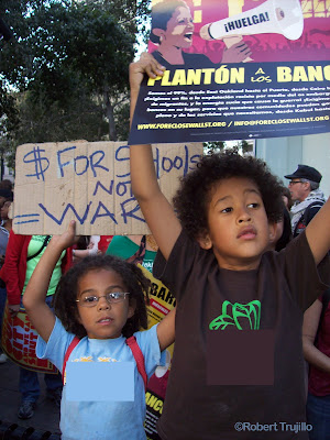 On a positive note, my son, my family, mom, step father, my crew, and countless homies including some of my kids school teachers came out to the day of strike and it was a beautiful day. The media estimates 4-5000. I say there was more like 30,000 out there. Families, union workers, kids, queer folks, hood folks, folks from all over the bay came and shut the port of Oakland down. My son was so inspired, many tmes that day he began shouting with his friends all by himself. Adults and kids around us joined him and handed him a megaphone. Proud Daddy moment for sure!