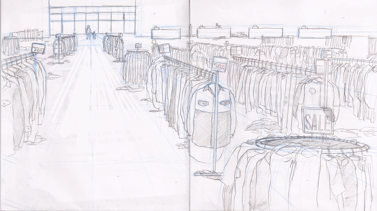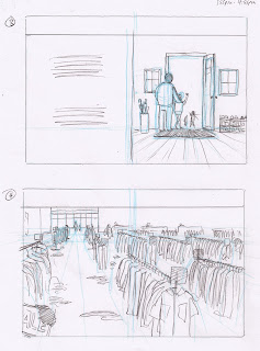 The first thing I do when imagining my own project or illustrating a story for someone else is make a set of very rough thumbnails. For BIG ideas like these it can be kind of daunting to start so its better to draw something really tiny just to get an idea for “placement”. That means, where does a person stand, sit, talk, run, or yell in the frame? If there is a car, is it to their right, left, or directly behind them.