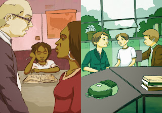 Heres an illustration for the latest issue of Rethinking Schools. This piece was done very quickly with the intent to illustrate the attitude and emotion parents of color and white parents face when advocating for a child with disabilities. In a kind of comic style. Although I’m not familiar with the subject, I enjoyed researching the article’s author Ruth Colker. A parent of a disabled child, Ruth not only fought for her son, but brings up some insightful points about how people navigate the system to make sure their child has the best possible education as possible. Seeing that children of color are placed in special ed or diagnosed with add/adhd many times over white children, this women’s article can be a valuable resource and so is “Rethinking Schools” (Read the article online). Thanks to my art director/designer Nancy Zucker!