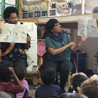 Here’s a shot of me and author Melissa Reyes reading at Mills Elementary school. We were invited by a fellow teacher and had a blast talking to the kids about the book, Oakland history, and nature. The kids actually were taken on a field trip to Sausal Creek in Dimond Park so they had lots of questions and comments. Follow Mills on Instagram for more photos.