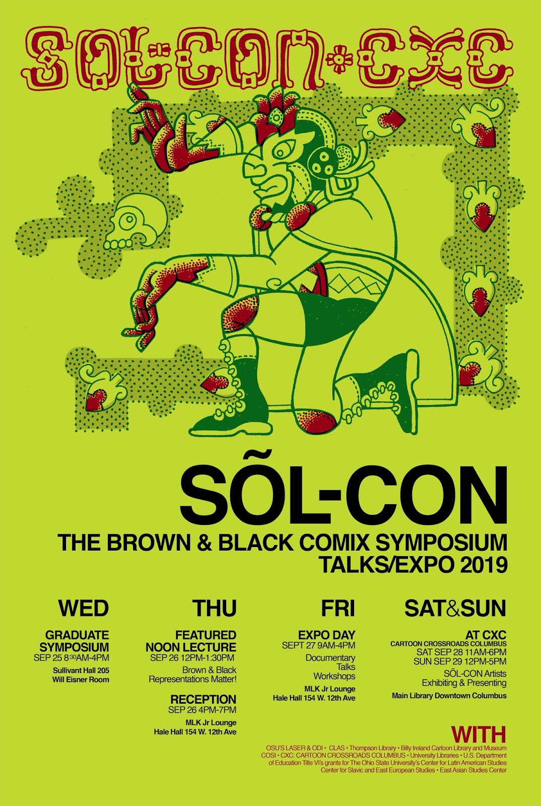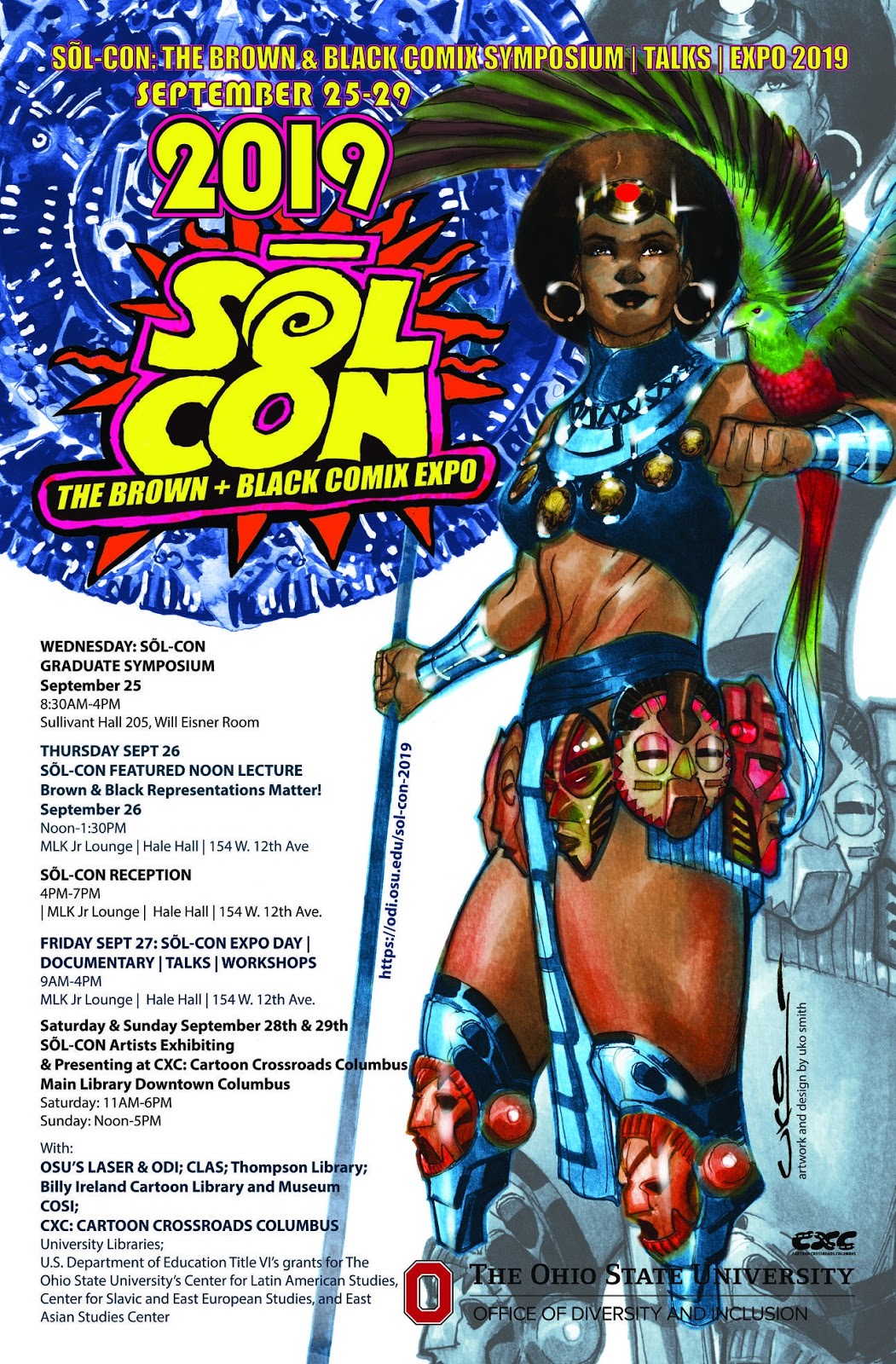 Yooooo. I’m so excited to announce that I will be at this years 5th annual SOL CON in Columbus Ohio. This is an amazing comic con and creative festival featuring Black and Brown creatives from the midwest, the East Coast, the West Coast, Mexico, and so many more places. I met the festival’s organizer Dr Frederick Luis Aldama at the last Latino Comics Expo! This event will be held at the Ohio State University and sponsored by the Office of Diversity & Inclusion, Billy Ireland Cartoon Research library, and Cartoon Crossroads Columbus. I