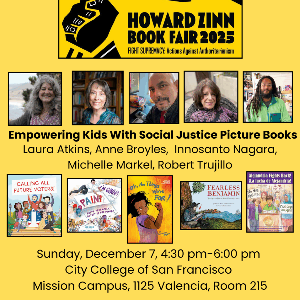 Hey fam, I’m excited to be a part of a panel discussion at the legendary @zinnfair in Frisco on Sunday Dec 7th about empowering kids w/Social Justice picture books. I’ll be w/my co-conspirators Laura Atkins and Innosanto Nagara and big shout out to Anne Broyles and Michelle Markel who’ve done the heavy lifting of organizing this.